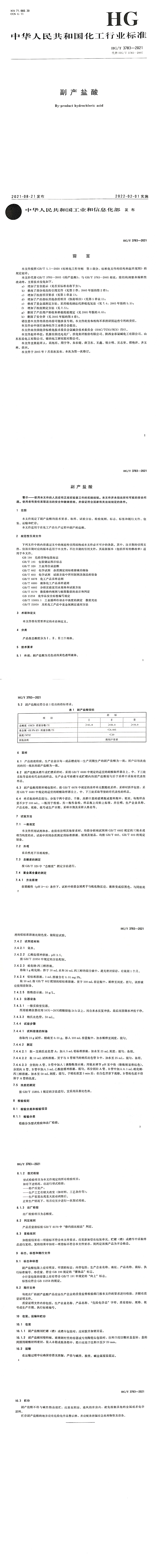HG/T 3783-2021《副產(chǎn)鹽酸》,已于2021年8月21經(jīng)國家工業(yè)和信息化部發(fā)布,并已于2022年2月1日起實施。